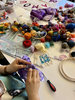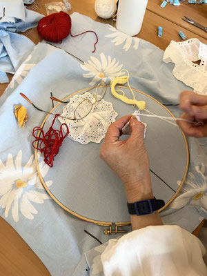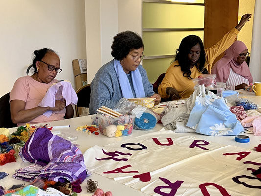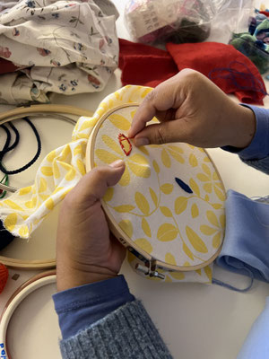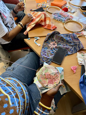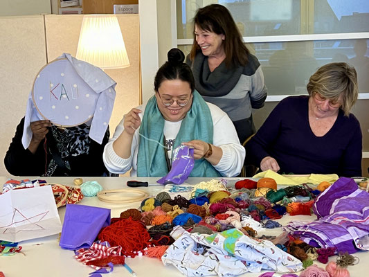 Certaines ont découvert pour la première fois l’art du fil et de l’aiguille, guidées par celles qui le pratiquent depuis longtemps.