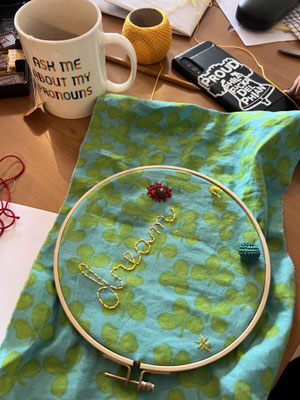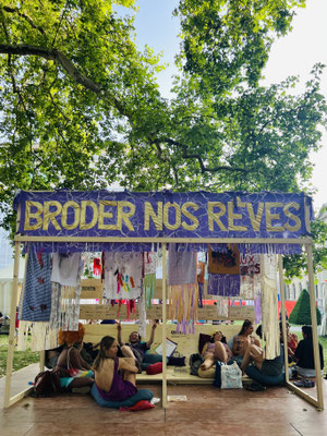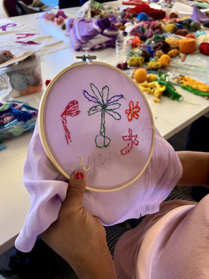 D’octobre 2024 à mars 2025, quatre ateliers de broderie ont eu lieu au sein de différentes associations du réseau. Avec Léonore Dupanloup nous avons accueilli et accompagné plus de 60 femmes – participantes d'AMIC, Aux 6 logis, Camarada, Femmes à bord, F-information, et Voie F – à broder leurs rêves.